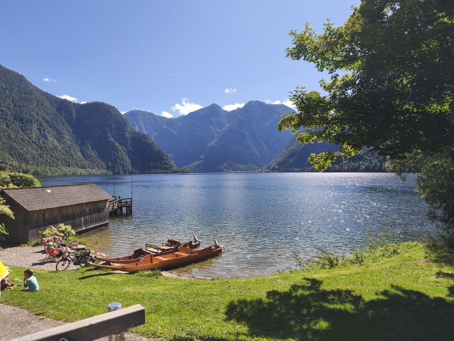 Im Konvoi ging es wieder talwärts nach Voglau und Gosau zum Westufer des Hallstätter See. Dank wunderschönem Wetter konnten wir die Aussicht sowohl in die Bergwelt und im speziellen auf den Dachstein Gletscher genießen.