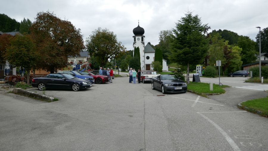 Treffpunkt in der Früh war wieder der Parkplatz des Sportzentrums Gmunden. Heute hatten wir zwei zusätzliche Cabrios dabei, die sich auf Grund der guten Wettervorhersage kurz entschlossen hatten mitzufahren.