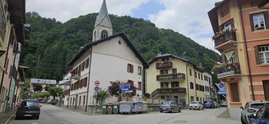 In Pontebba hatten wir einen Parkplatz am Ortsende gewählt, aber da der Ort nur eine eher überschaubare Größe hat, gelangte man von dort schnell zu Fuß ins Zentrum. Dort wählten die Teilnehmer selbst eines der Cafés oder Restaurants, um sich zu verköstigen. Allzu groß war die Auswahl der in Frage kommenden Lokalitäten hier naturgemäß nicht, und auch beim Zustand der Gebäude konnte man erkennen, dass der Ort, wie auch manche Kleinstädte in Deutschland, schon bessere Zeiten gesehen hat.