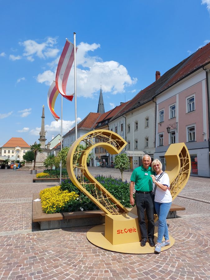 Nach der Begrüßung neu eingetroffener Teilnehmer, der üblichen kurzen Ansprache von Werner und dem „zweiten Morgenkaffee“ ging es bei schönstem Cabriowetter ab 10:30 Uhr los Richtung St. Veit. An diesem Zielort hatten Werner und Brigitte einen Museumsbesuch eingeplant. Einen solchen Programmpunkt hatte es bei den bisher unter ihrer Regie am Faaker See durchgeführten Treffen noch nicht gegeben. Organisatorisch war das wegen der versetzten Abfahrtszeiten der Fahrgruppen nicht ganz einfach zu lösen, funktionierte aber dann doch recht gut.