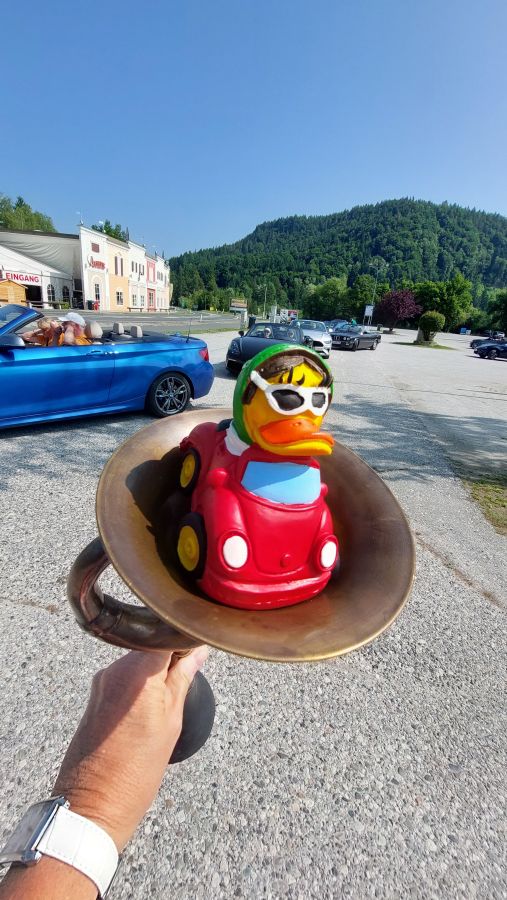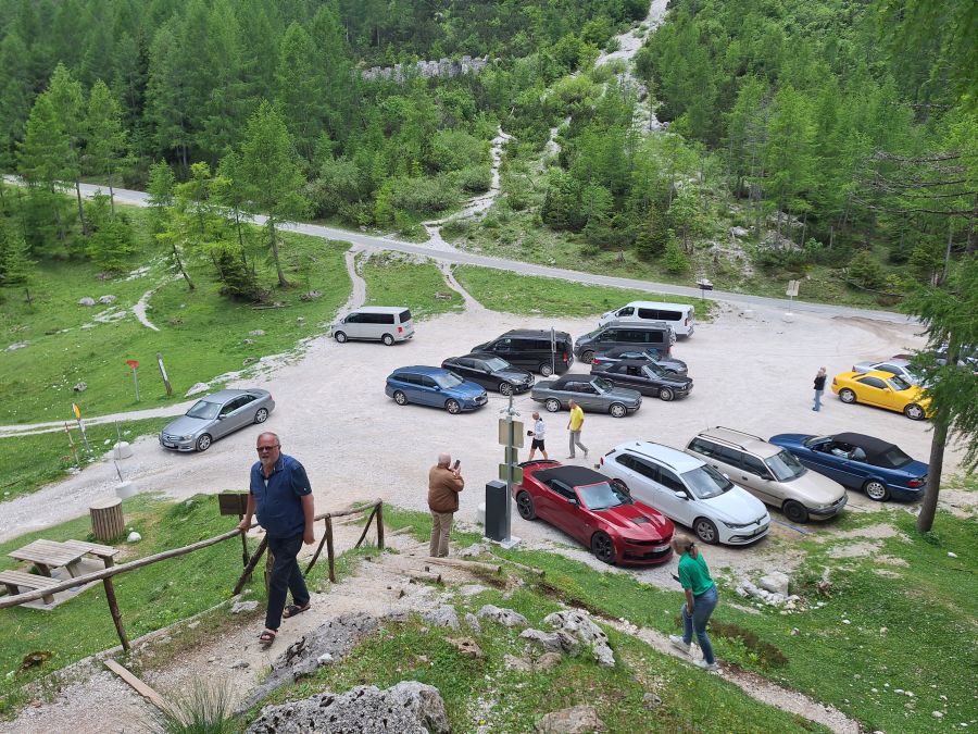 Auch wenn es nicht jeder Tourismusverantwortliche in Villach auf dem Schirm hat: sehr viele Cabriofahrer hängen nach dem offiziellen Ende des Treffens noch ein paar Tage dran, um am Faaker See oder in seiner Umgebung etwas in Eigenregie zu unternehmen. Die durchschnittliche Verweildauer in den Beherbergungsbetrieben dürfte deshalb inzwischen bei etwa einer Woche liegen. Da machte 2025 keine Ausnahme. So waren z.B. die meisten Mitglieder der „Cabrios on tour“ an diesem Mittwoch in Slowenien unterwegs und hatten dabei unter der Führung von Holger und Birgit sehr interessante und abwechslungsreiche Routen „erforscht“.