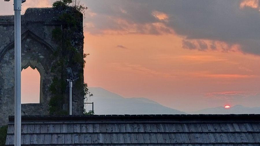 Abends trafen sich einige der noch anwesenden Cabriofahrer auf der Burg Finkenstein zum Abendessen. Wir saßen im Freien und genossen die milde Abendstimmung. In früheren Jahren lief einiges im Rahmen des Cabriotreffens auf der Burg; zwischenzeitlich wurde sie einige Jahre lang umgebaut, aber jetzt ist das Restaurant wieder in Betrieb, einschließlich gemütlicher Außengastronomie.