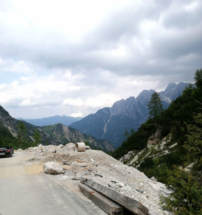 Während der Mittagspause überraschte uns der Himmel mit dem einen oder anderen, teils kräftigen, Schauer, aber fast alle nahmen es mit Humor. Und am Ende war der Spuk fast genauso schnell vorbei, wie er gekommen war: Die Straßen trockneten sehr schnell ab, so dass für ausreichend „Grip“ bei der nun auf uns wartenden Passstrecke gesorgt war. Für einen kurzen Aufreger sorgte dann noch die Befürchtung, der Vršic-Pass könnte geschlossen sein. Diese erwies sich jedoch als gegenstandslos, weil die Sperrung nur an Werktagen gültig war.
