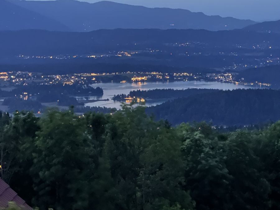 Der Samstagabend ist traditionell einer der Höhepunkte des Cabriotreffens am Faaker See, und so sollte es auch in diesem Jahr sein. Wie im letzten Jahr hatten wir als passende Örtlichkeit für das Abendprogramm den Baumgartnerhof hoch über dem Faaker See gewählt, von dessen Terrasse man herrliche Ausblicke auf unseren Lieblingssee und die Berge nördlich davon hat. Dieses Jahr hatten wir einen eher milden Abend erwischt, weshalb zwischendurch immer wieder mal einige den Weg nach draußen fanden, um die Aussicht und den stimmungsvollen Sonnenuntergang zu genießen.
