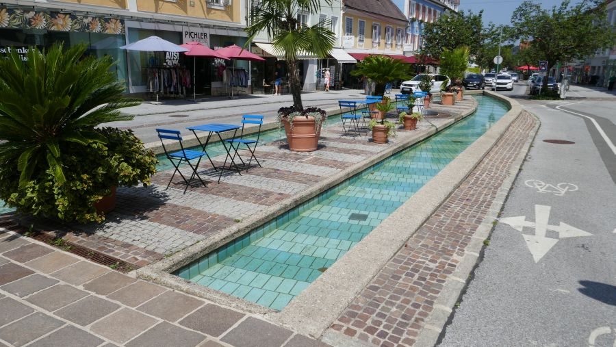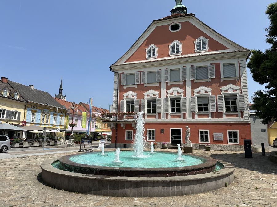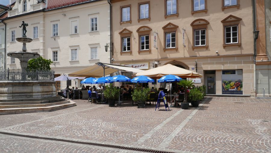 Deutschlandsberg besitzt einen schönen, weitläufigen Platz im Zentrum, an dem auch die meisten Restaurants und Cafés liegen. Wir verteilten uns auf die verschiedenen Lokalitäten, saßen meistens im Freien bei angenehmen Temperaturen und hatten vor der Abfahrt sogar noch etwas Zeit, dem einen oder anderen kleinen, aber charmanten Laden einen Besuch abzustatten.