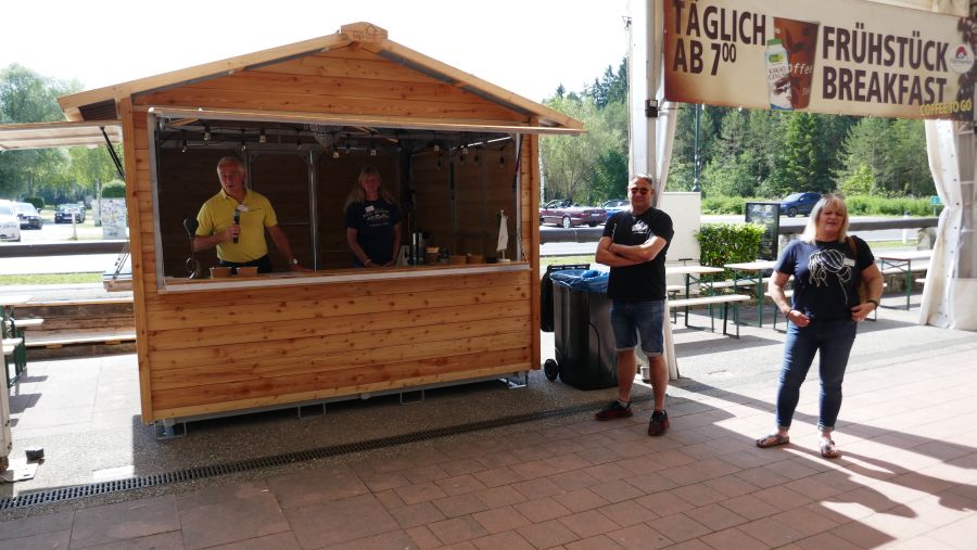 Für den Ausschank des Kaffees an die Teilnehmer zeichnete auch in diesem Jahr wieder Ulli verantwortlich, während Hans und Alf auf dem Parkplatz den eintreffenden Cabrioteams den Weg zu Brigitte, Margit und Sonja wiesen, so dass der Empfang der Teilnehmer zügig und routiniert erfolgen konnte.