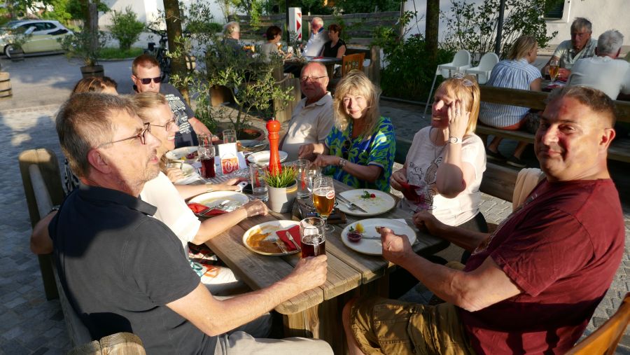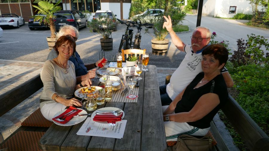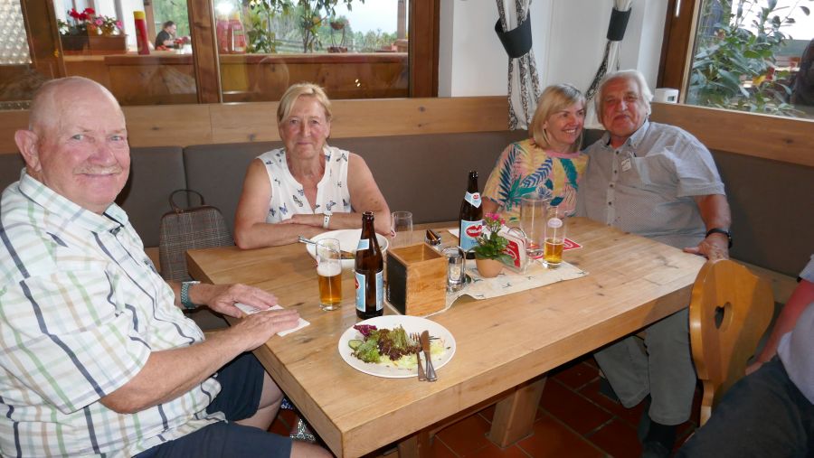 Für den Abend hatten sich schon vor dem Beginn des Treffens auf dem Anmeldeformular 50 der noch am See verbliebenen Teilnehmer zum gemeinsamen Abendessen im Gasthaus „Bienenhütte“ in Drobollach eingetragen. Das übertraf unsere Vorausschätzung; jedoch hatten wir dem Restaurant - selbstverständlich rechtzeitig - die nun gegenüber der ursprünglichen Angabe (35 – 40 Personen) erhöhte Anzahl von Gästen mitgeteilt. Leider sah man sich dort nicht in der Lage, für uns 50 Plätze zu reservieren. Dies führte dazu, dass am Ende nur etwa 25 Personen in der „Bienenhütte“ zu Abend aßen. Notiz am Rande: Ausreichend Platz für 50 Personen wäre vorhanden gewesen.