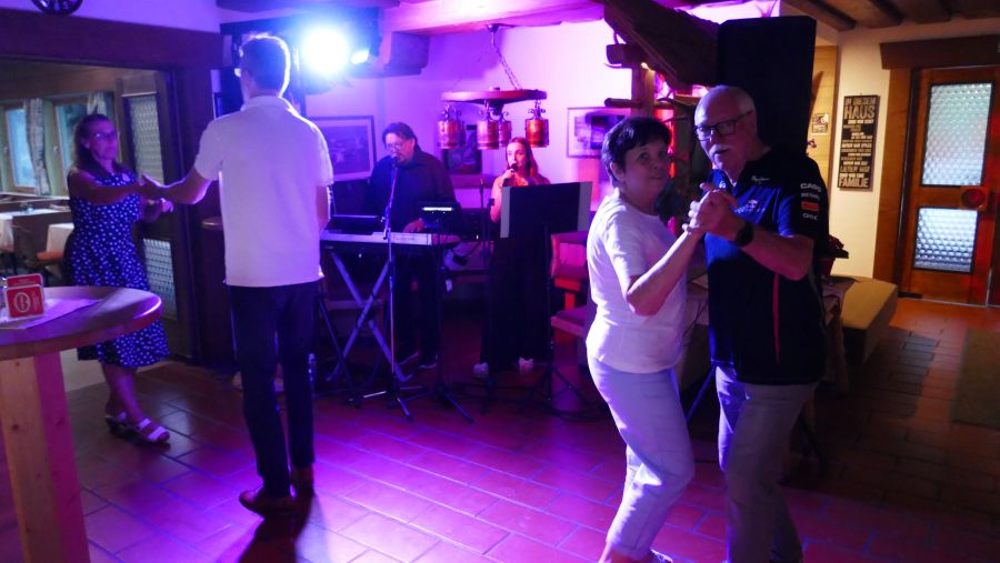 Nach dem einhellig gelobten, schmackhaften Abendessen (à la carte!) gaben Nina und Norbert mit flotten und zeitlosen Rhythmen unserer Abendveranstaltung einen passenden musikalischen Rahmen. Neben etablierten „Klassikern“ überraschten sie mit gekonnt vorgetragenen, topaktuellen Titeln wie „Es eskaliert“. Alle, die bis zum Schluss des Auftritts anwesend waren, hatten besonders viel Freude an der Darbietung, und häufiger als im vergangenen Jahr legten auch einige Paare ein flottes Tänzchen „aufs Parkett“.