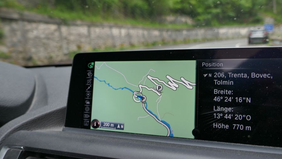 Bald hatten wir das Städtchen Bovec, den Mittelpunkt des oberen Socatales, erreicht. Mitten im Ort befindet sich ein recht großer Parkplatz, dessen Kapazität trotzdem nicht für alle unsere Cabrios ausreichte, weil an diesem Sonntag viel Ausflugsverkehr den Weg nach Bovec gefunden hatte. Dafür waren viele Läden geöffnet und die Gastronomie war (mal besser, mal schlechter) auf höhere Besucherzahlen eingestellt.