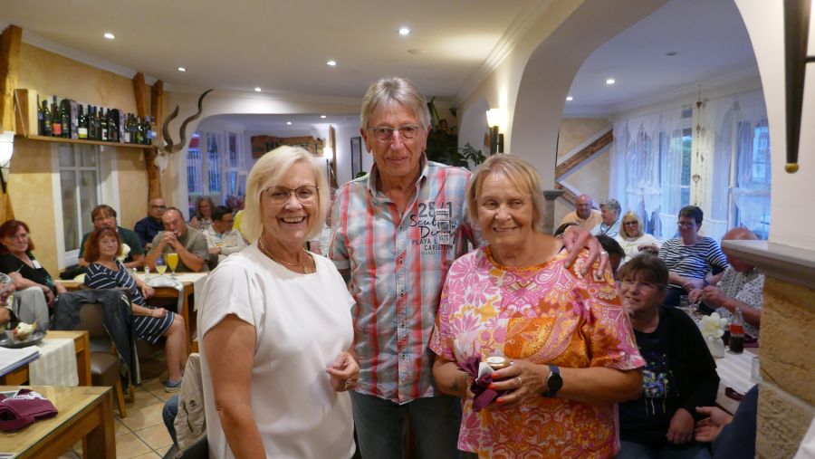 Sechs Mitglieder haben 2025 die silberne Ehrennadel für 10 Jahre Mitgliedschaft im CFF verdient. Leider war von ihnen nur eine Person anwesend, nämlich Brigitte. Sie ist nicht nur privat an Werners Seite, sondern amtiert seit 2022 auch als Präsidentin unseres Clubs. Sie hat einen ganz wesentlichen Anteil daran, dass bei unseren Treffen (fast) alles rund läuft und ist Dreh- und Angelpunkt in der Kommunikation mit den Gastronomiebetrieben am Faaker See und „Anchorwoman“ bei der WhatsApp-Kommunikation zwischen Präsidium und Mitgliedern.