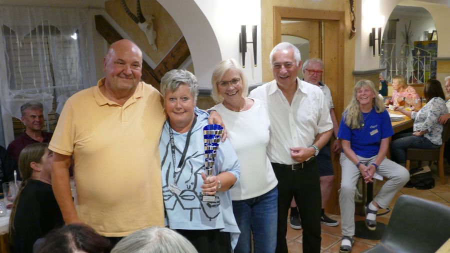 Abends waren wir am Sonntag im Pogöriacher Hof zu Gast, wo wir in zwei aneinandergrenzenden, gemütlichen Räumen platziert waren. Nach dem Abendessen folgten weitere Programmpunkte, darunter natürlich auch die mit Spannung erwartete Vergabe der drei zu gewinnenden Pokale.