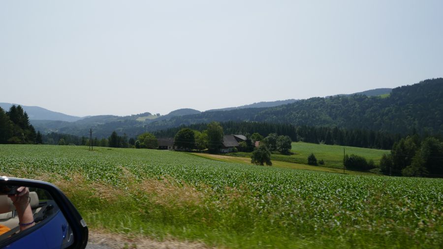 Das Roadbook für diese Etappe war jedenfalls das längste von allen während des gesamten Treffens. Ein sicheres Indiz dafür, dass es wohl nicht über Hauptverkehrsstraßen gehen würde. So war es auch tatsächlich: Bald hinter St. Veit eröffnete sich ein weiter Blick nach Süden Richtung Karawanken. Wäre es nicht so diesig gewesen, hätte sich das Bergpanorama noch viel eindrücklicher am Horizont ausgebreitet.