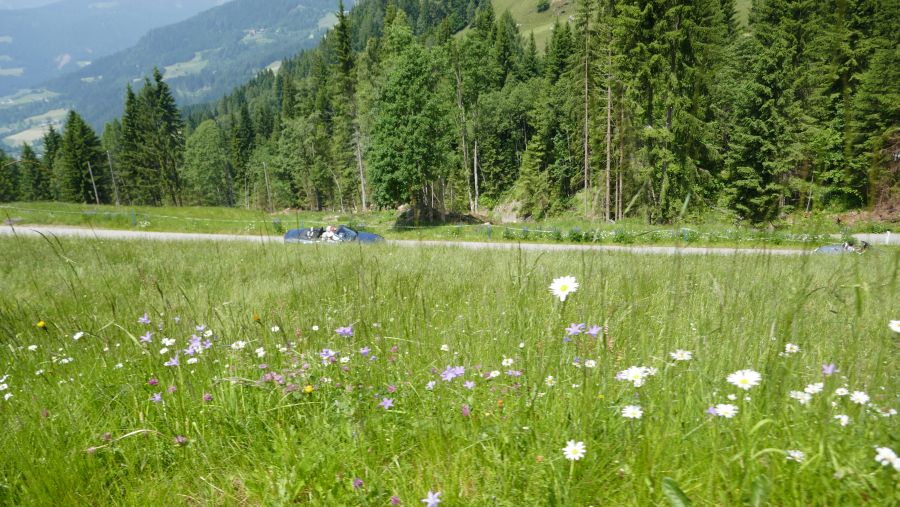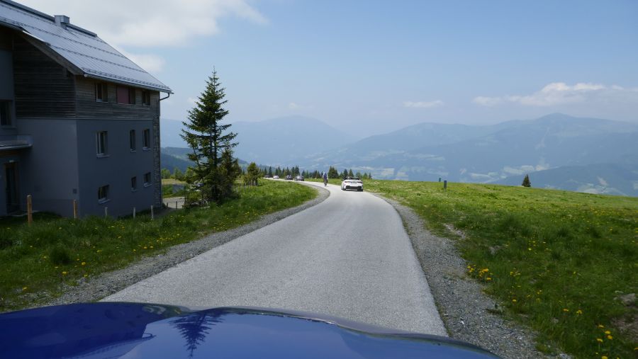 Mit einer Passhöhe von 1642 Metern war das Klippitztörl nicht nur der höchste Punkt auf der Dienstagsausfahrt, sondern auch der höchste mit dem Cabrio erreichte Ort des gesamten diesjährigen Treffens, zumindest, was dessen offiziellen Teil laut Programm angeht. Auch diese landschaftlich ebenfalls sehr reizvolle Etappe bis hinunter nach Lölling ist recht gut ausgebaut, so dass man bei geringem Verkehr recht zügig unterwegs sein konnte.