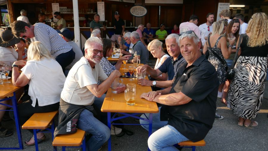 Am Getränkestand wiesen die grün-weißen Wimpel der Cabrio-Freunde Faak auch bisher „Nichteingeweihten“ den Weg zu den von unserem Club reservierten Tischen. Sie wurden genauso herzlich begrüßt wie die „Stammgäste“ aus den Vorjahren.