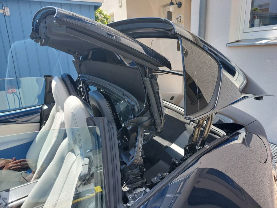 Wir kommen im Autohaus an, das Tor geht auf - und da steht er: rote Nummer, Dach offen, fahrbereit, der Schlüssel steckt - ach ne, keyless go ;-) Es war allein aufgrund des Anblicks schon um mich geschehen. Aber da ging es erst richtig los: