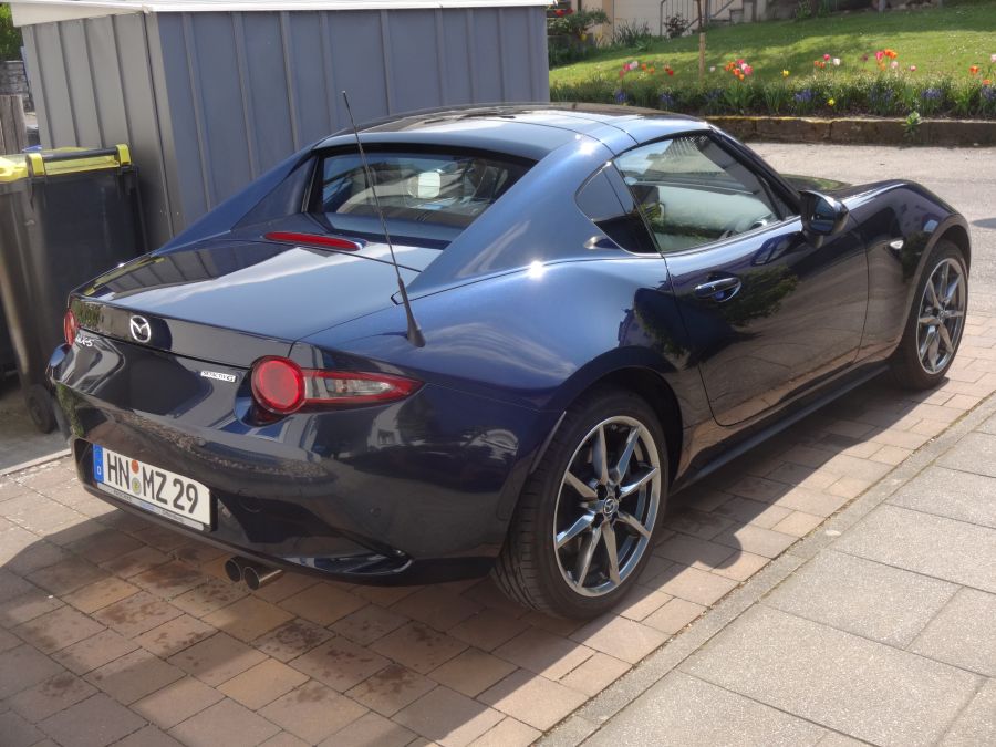 Seither zaubert mir mein blauer ("deep crystal blue metallic") Mazda MX-5 RF ein Lächeln ins Gesicht, sobald ich nur in seine Nähe komme und egal wie schlecht es mir geht. Und von Zeit zu Zeit besuche ich ihn über Winter in seinem salzfreien Quartier - das hatte ich natürlich schon vor Abholung angemietet ;-) - um ein paar Worte mit ihm zu wechseln und mir die Vorfreude auf den Frühling abzurufen. Regelmäßig wird er auch von Hand gepflegt, was all meine befreundeten Kontakte auf dem Handy jedes Mal per Foto im Status dokumentiert bekommen :-)