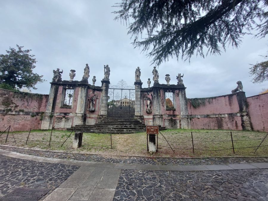 Etwas höher liegt die Villa Piovene Porto Godi, die schon äußerlich wesentlich mehr hermacht, auch wenn sie ihre besten Zeiten ebenfalls schon gesehen hat. Aber auch hier fehlt den aktuellen Eigentümern, die wohl Nachkommen des ursprünglichen Adelsgeschlechts sind, anscheinend das Geld für eine umfassende Restaurierung. Leider kamen wir auch hier außerhalb der Besuchszeiten vorbei und mussten so das Thema Villen vorzeitig abhaken.