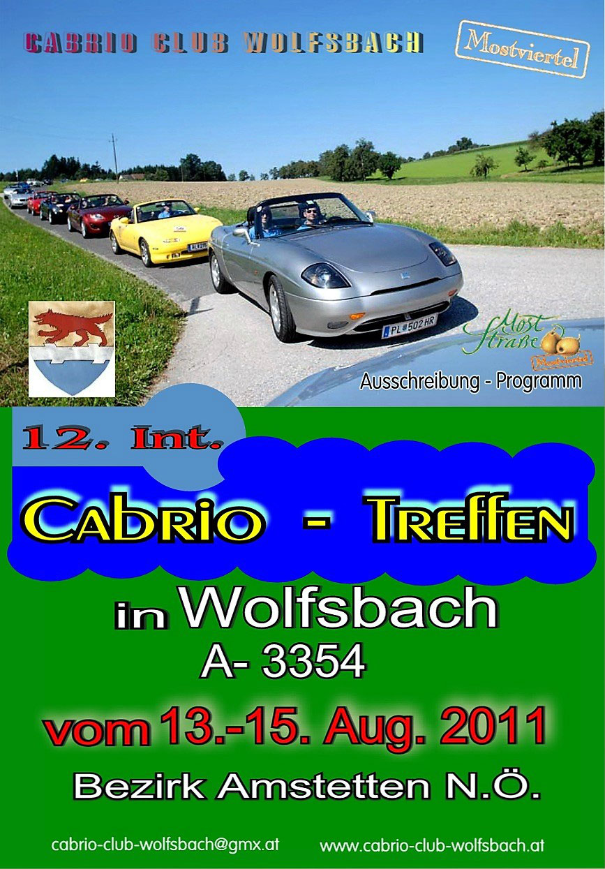 Alle zwei Jahre findet in Wolfsbach ein gemütliches Cabriotreffen statt, zu dem der CFF in diesem Jahr mit neun Fahrzeugen vertreten war. Dies reichte in der Clubwertung für den 2. Platz, den wir uns mit dem italienischen Barchetta-Club teilten. Das waren aber bei weitem nicht die einzigen Italiener beim Treffen. Daran sieht man, dass das Wolfsbacher Treffen weit über die Landesgrenzen hinweg bekannt und beliebt ist. Die Italiener kommen sogar, obwohl sie kaum deutsch sprechen und umgekehrt die Wolfsbacher kein italienisch. Zur Verständigung haben die Wolfsbacher dieses Mal flugs eine Studentin als Dolmetscherin engagiert.
