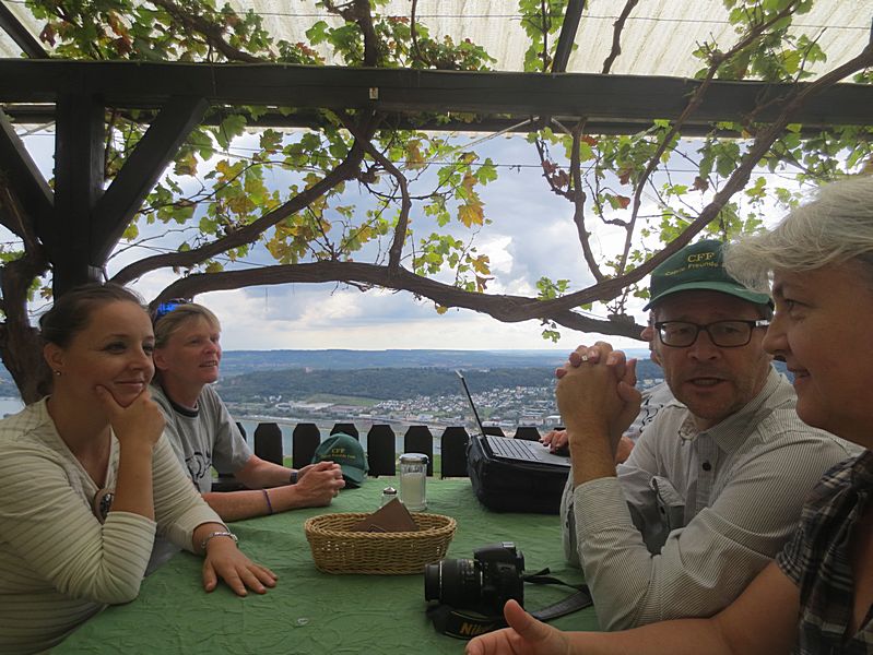 Unser nächstes Ziel ist das Berghotel auf dem Felsen der Loreley. Einige eifrige CFF-Damen singen gemeinsam das passende Lied (PDF). Auch hier genießen wir einen herrlichen Ausblick auf das Rheintal und stärken uns mit Kaffee und Kuchen.