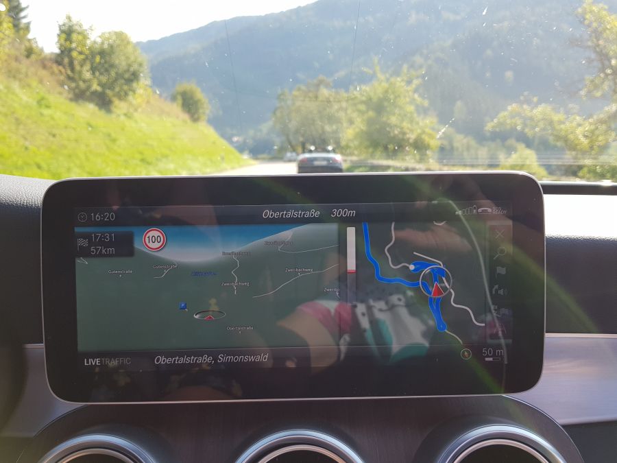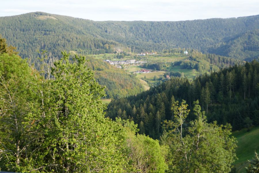 Irgendwo in einem kleinen Ort verlassen wir die Schwarzwaldhochstraße (B500) und fahren über kleine und kleinste Sträßchen weiter. An den steilen Abhängen gibt es keine Leitplanken für die Fahrzeuge, nur noch Absturzsicherungen für Kühe. Dann haben wir das nächste Ziel erreicht, die Renchtalhütte, einsam und Idyllisch gelegen, mit uriger Atmosphäre. Mit echter Schwarzwälder Torte genießen wir den Panoramablick von der Terrasse aus auf den Schwarzwald, das im Tal zu erkennende Dollenberger-Schwarzwald-Resort und das Renchtal.