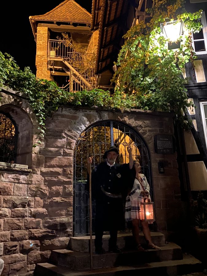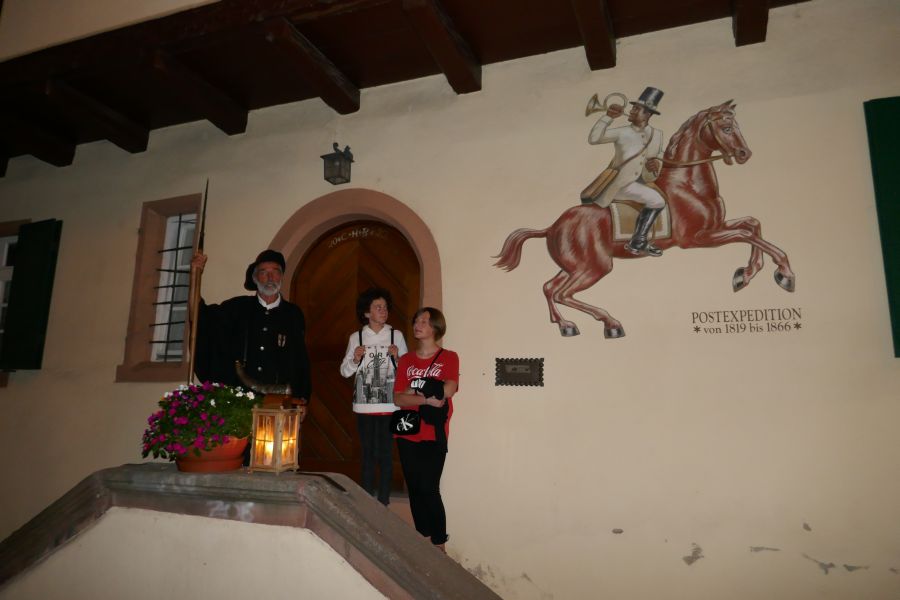 Nach einem guten Abendessen sollte man auch etwas zur Verdauung tun, so begleiten wir den Gengenbacher Nachtwächter Heiner Müller auf einem historischen Rundgang durch die mittelalterliche Altstadt und erfahren hierbei viel über sein Leben und Wirken der Nachtwächter in vergangenen Zeiten. Sein Rundgang beginnt immer mit der Schließung der Stadttore, dann sorgt er auf seinen Rundgängen für Ruhe und Ordnung und achtet auf eventuellen Feuerausbruch.