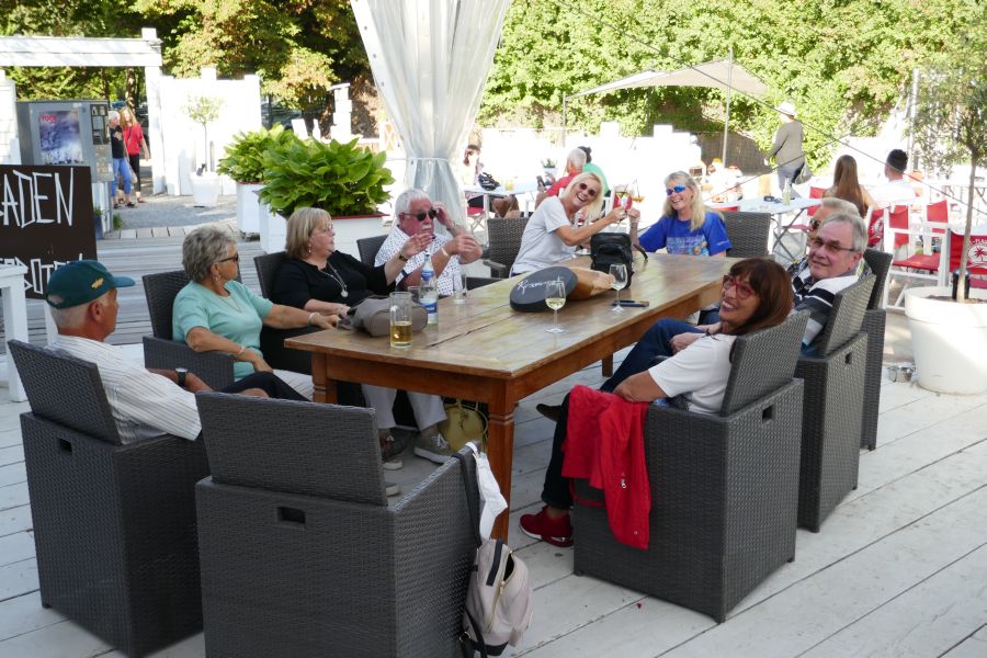Ab 16:00 Uhr kann das Offenburger Cabrio-Treffen starten. Nach und nach treffen 13 Cabrios am Gifizsee, unserem ersten Treffpunkt, ein. Im Strandlokal Essgut haben Robby und Didi entsprechende Tische reserviert.