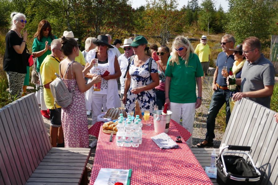 Nach der Stärkung geht es über die kurvenreiche und landschaftlich schöne, zum Teil über 1.000 m hohen Schwarzwaldhochstraße wieder nach Süden, zu einem Zwischenstopp am Lotharpfad. Dort wartet eine Überraschung auf uns. Der Sohn von einem der beiden Organisatoren hat hier ein Büfett mit Kuchen und Getränken aufgebaut. Nach einer kleinen Stärkung laufen die meisten von uns den Erlebnispfad durch eine von dem Orkan „Lothar“ 1999 umgeworfene Waldfläche, die sich die Natur jetzt langsam wieder zurückholt.