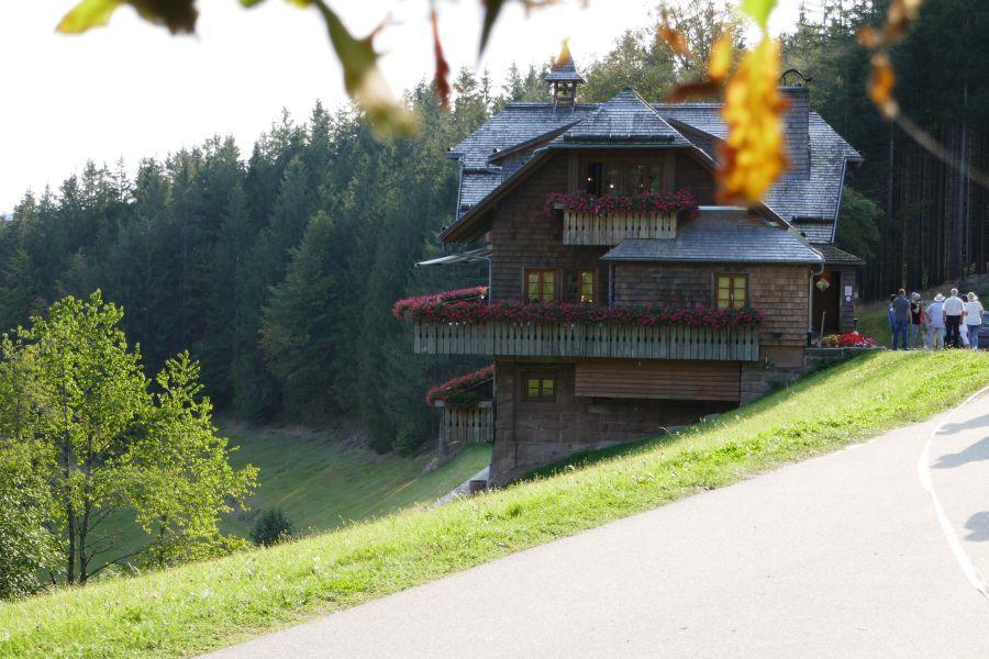 An der im Blockhausstil erbauten Geroldsauer Mühle, am Beginn der Schwarzwaldhochstraße, legen wir eine Mittagsrast ein.
