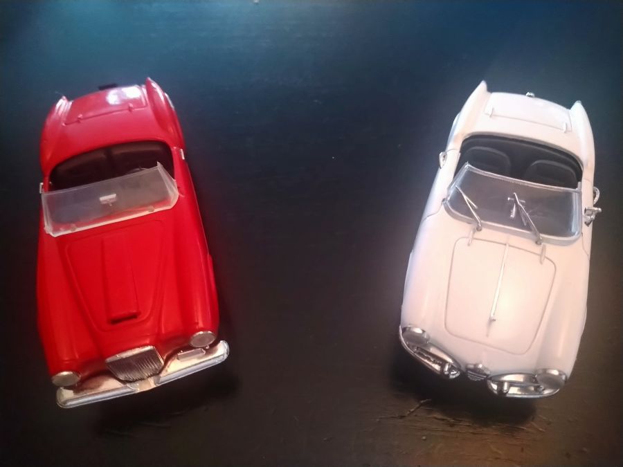Der Bau des Lancia Aurelia Spider (rot) wurde, wie bei vielen anderen sportlichen Fahrzeugen aus Europa, vom amerikanischen Importeur der Marke, Max Hoffman, angeregt. Designer der eleganten Karosserie war Pininfarina. Die sportliche Alfa Romeo Giulietta (weiß) war auch als Spider erfolgreich und brillierte mit einem besonders drehfreudigen DOHC-Motor.