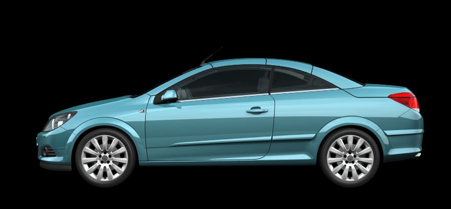 Beim Astra TwinTop von Opel ist der Übergang von der Dachpartie zum Kofferdeckel stilistisch sehr sauber gelöst, wie die Seitenansicht mit der x-förmigen Kreuzung der Linien am kofferraumseitigen Ende des hinteren Seitenfensters beweist. Leider war dem Modell kein durchschlagender Erfolg vergönnt, trotz guter Anlagen. War ja „nur“ ein Opel!