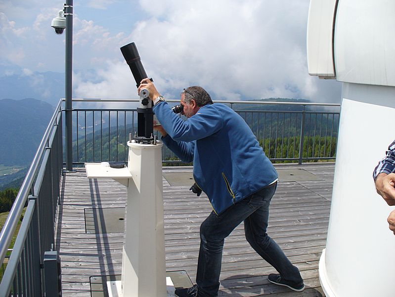 Über die schmale und kurvenreiche Gerlitzen-Gipfelstraße fahren wir bis zum Alpinhotel Pacheiner hinauf, welches auf etwa 1.900 m Höhe, unmittelbar unter dem Gipfel der Gerlitzen liegt. Dort werden wir von Hans und Ingrid, die die Sternwarte betreuen, bereits erwartet.