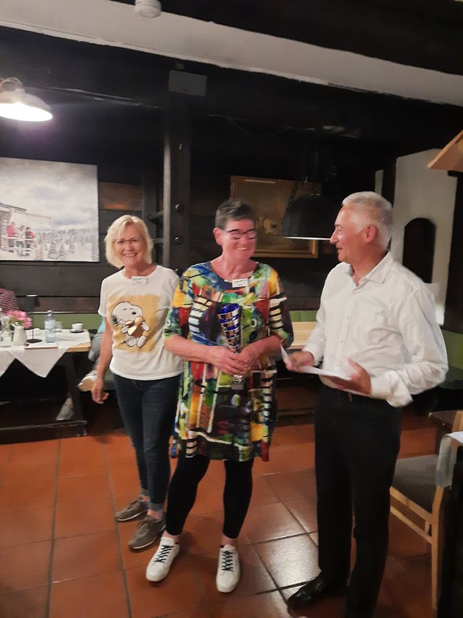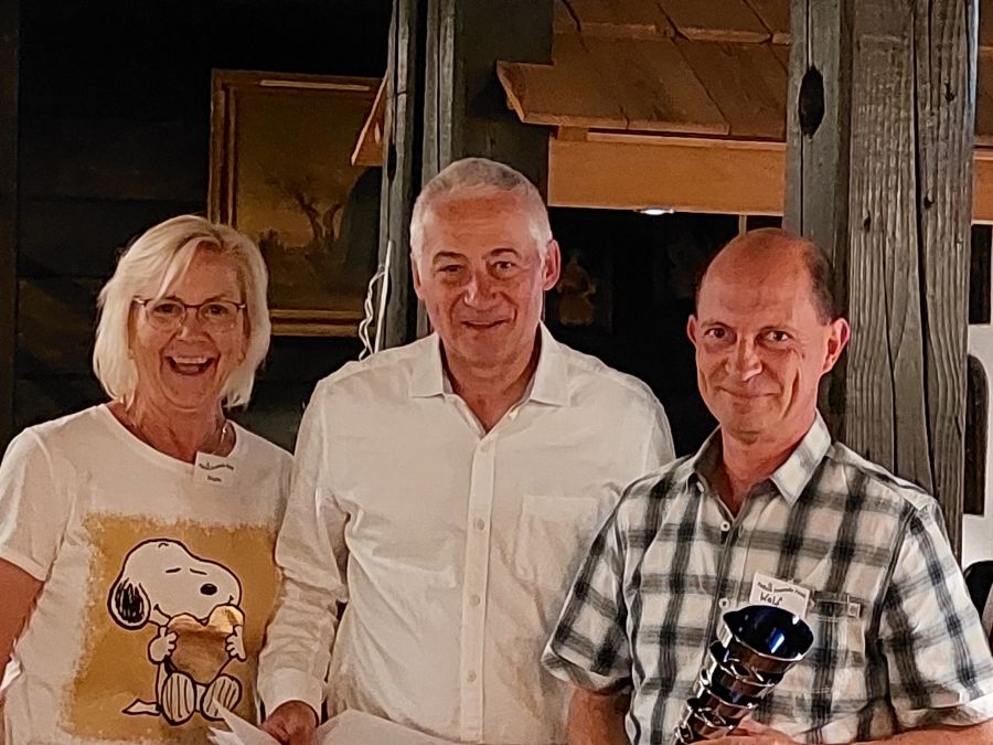 Dieses Jahr wurde, wie schon im letzten, die Person mit der eifrigsten Teilnahme an allen bisherigen Programmpunkten ausgezeichnet. Dabei fiel die Entscheidung wirklich schwer, weil diese Vorgabe zunächst von sehr vielen erfüllt wurde. An dieser Stelle danken die Organisatoren ganz besonders all denjenigen, die ihnen durch ihre regelmäßige und zuverlässige Teilnahme an den von ihnen vorab gewählten Programmpunkten die Organisation etwas leichter gemacht haben. Am Ende gaben bei dieser Wertung Nuancen den Ausschlag, so dass schließlich Margit den Pokal mit nach Hause nehmen durfte.