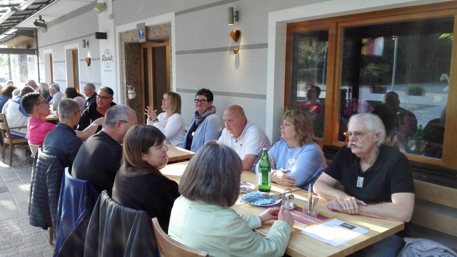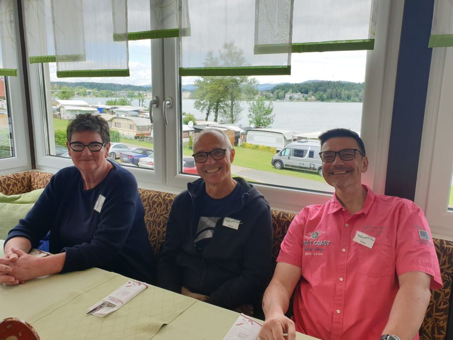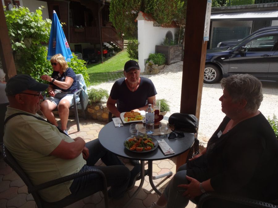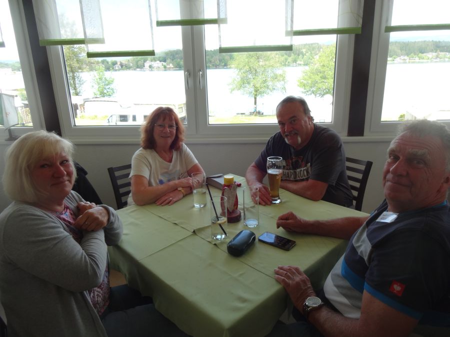 Der Montag verläuft am Faaker See eigentlich immer nach dem gleichen Muster: Einige Teilnehmer mussten auf Grund verschiedenster Verpflichtungen schon wieder die Heimreise antreten. Seit vielen Jahren steht deswegen am Pfingstmontag Vormittag der "Frühschoppen" beim Arneitz auf dem Terminplan, bei dem wir auch dieses Jahr die Heimkehrer verabschiedeten.