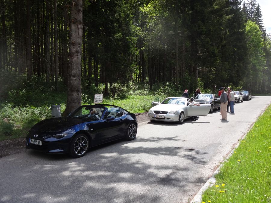 Bei der Dienstagsausfahrt haben fast alle Teilnehmer besonderen Sportsgeist gezeigt, denn die Versuchung, wegen des Regenwetters nicht mitzufahren, stand sicherlich im Raum. Die Organisatoren danken deshalb nachdrücklich allen, die dieser Versuchung nicht erlegen sind, so dass wir Cabriofahrer auch die engagierten Gastronomen im Thomatal nicht im Regen stehen lassen mussten, sondern dort mit der angekündigten Teilnehmerzahl erschienen sind. Am Ende waren sich eigentlich alle einig, dass sowohl Strecke wie auch Einkehr mehr als nur ein Ausgleich für die "Duschen" von oben waren.