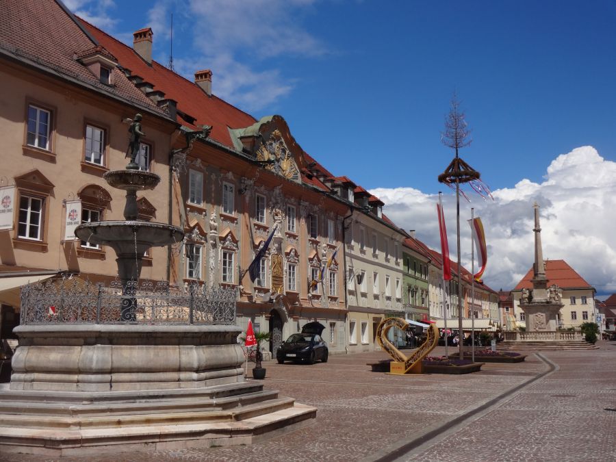 Wir fuhren dorthin über die Gailtal-Bundesstraße bis Kötschach-Mauthen und von dort über den Gailbergsattel bis Oberdrauburg. Ab dort ging es über eine Nebenstrecke direkt zum Parkplatz in Lienz, von dem man durch eine Unterführung schnell die Altstadt erreichen konnte. Im Vergleich mit der Tour des Vortages hatte die heutige einen komplett anderen Charakter, denn überwiegend ging es bei der Hin- und Rückfahrt über zügig zu befahrende Bundesstraßen. Damit die gewünschte Fahrfreude nicht ausbleibt, durfte allerdings auf den Pässen zwischen Gailtal und oberem Drautal auch ein bisschen ausgiebiger am Lenkrad gekurbelt werden.