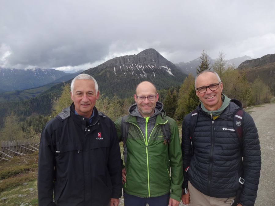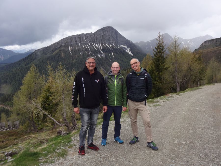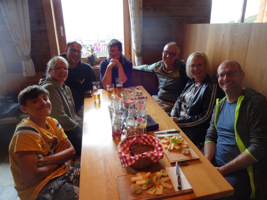 Eine weitere "Bergtour" sollte allerdings noch folgen. Am Endparkplatz der Straße machten es sich die 3 "Mädels" Margit, Sonja und Brigitte in der Wieserhütte bequem, während die "Jungs" Alf, Benno, Thomas, Silas und Werner zum Gipfelsturm auf den 2039 Meter hohe Martennock ansetzten. Nach einer halben Stunde Aufstieg standen wir am Gipfelkreuz und wurden mit einem fantastischen Ausblick über den Millstätter See, Spittal sowie Drau- und Liesertal belohnt. Natürlich musste diese Tat mit einem Gipfelschnaps belohnt werden, den ließen wir uns nicht nehmen.