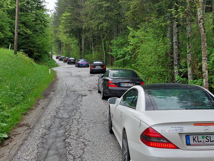 Für die Rückfahrt ab 14:30 Uhr war nur eine Strecke von ca. 70 Kilometern veranschlagt, aber diese hatten es in sich. Über schmale Sträßchen führte die Route an vielen Highlights vorbei oder war sogar selbst ein solches, z.B. der Abschnitt über eine Almwiese steil bergauf zur "Lebensalm". Das war ein typisches "Wernersträßle", benannt nach dem aktuellen Präsidenten des CFF. Dabei handelt es sich um etwas engere, fahrerisch meist anspruchsvolle und/oder landschaftlich besonders idyllische Streckenabschnitte.