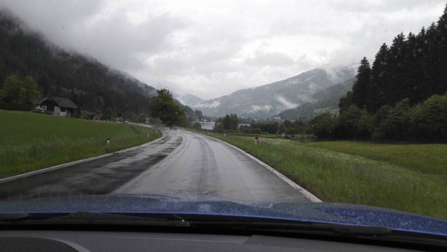 Auf der Passhöhe ließen wir den eingeplanten Fotostop wegen des anhaltenden Regens ausfallen, aber jeder konnte erahnen, dass der schön gelegene Turrachsee und die teilweise typisch alpenländischen Hotels und Pensionen dort bei gutem Wetter einen ganz eigenen Charme entwickeln würden.