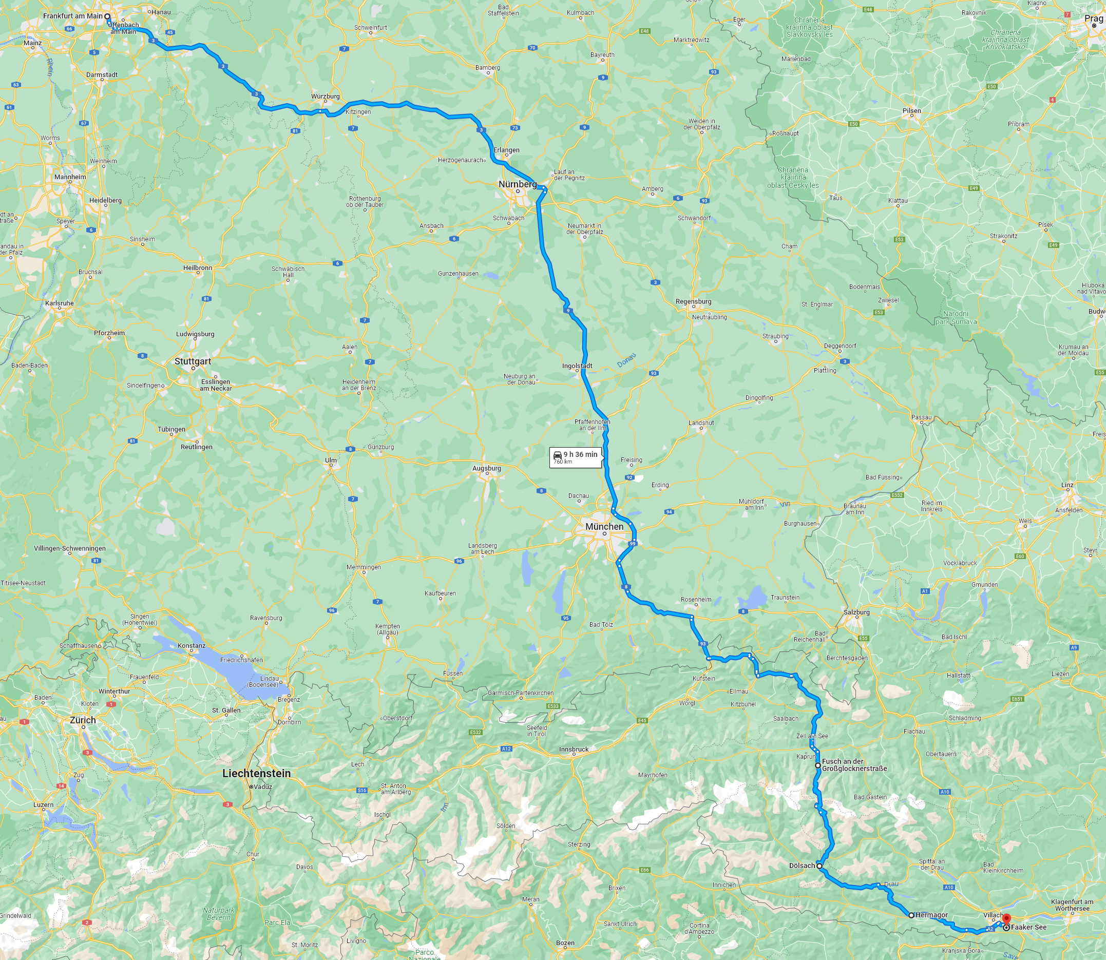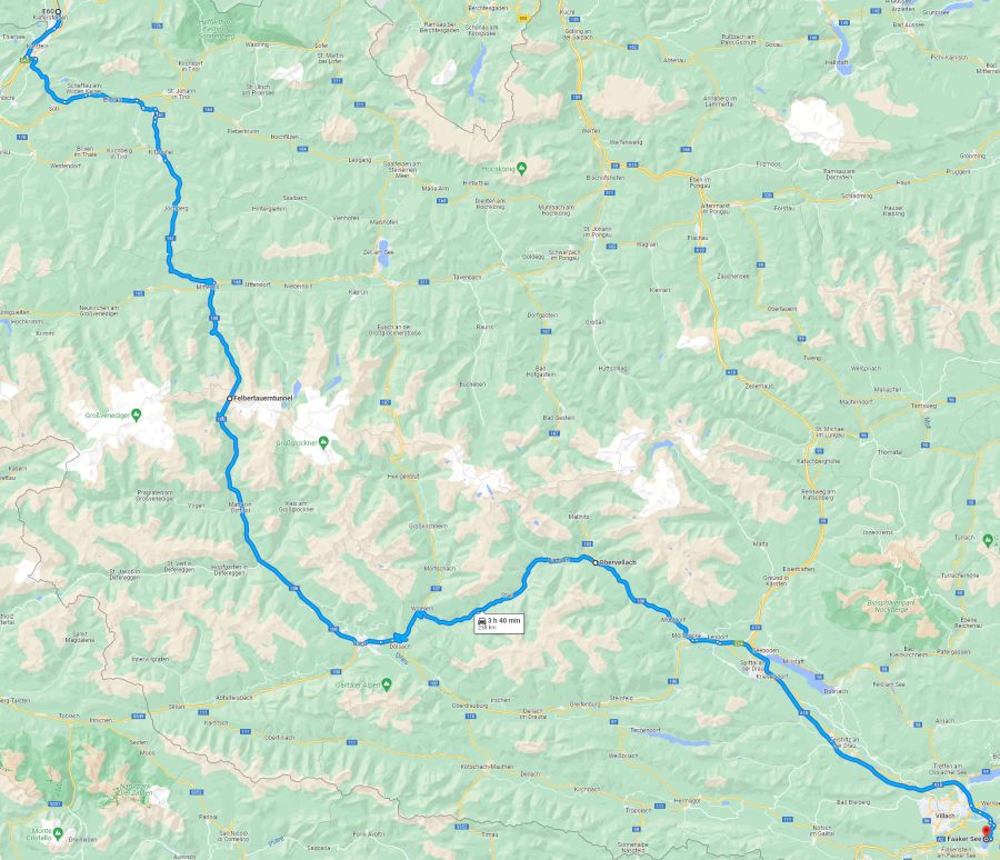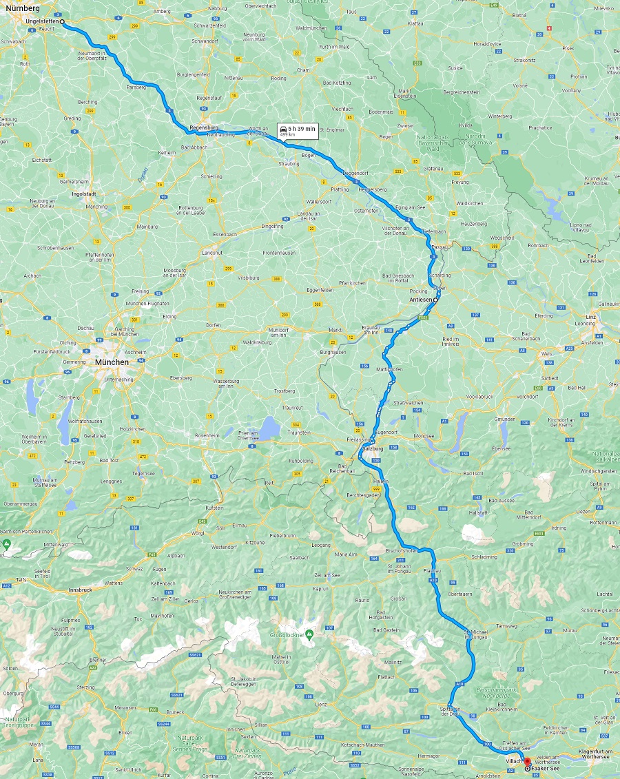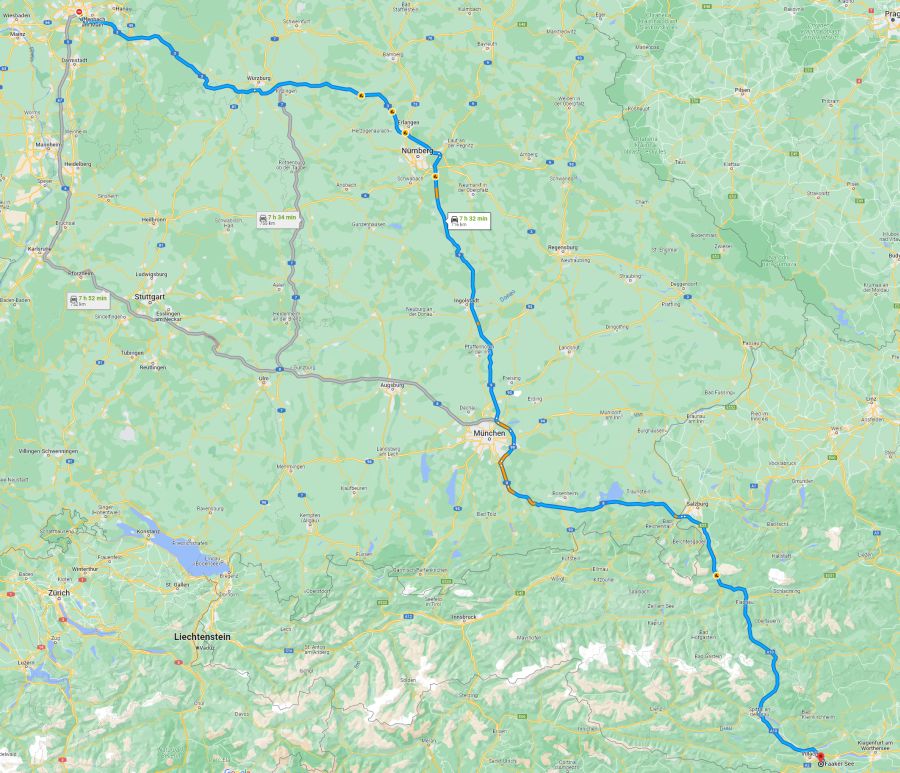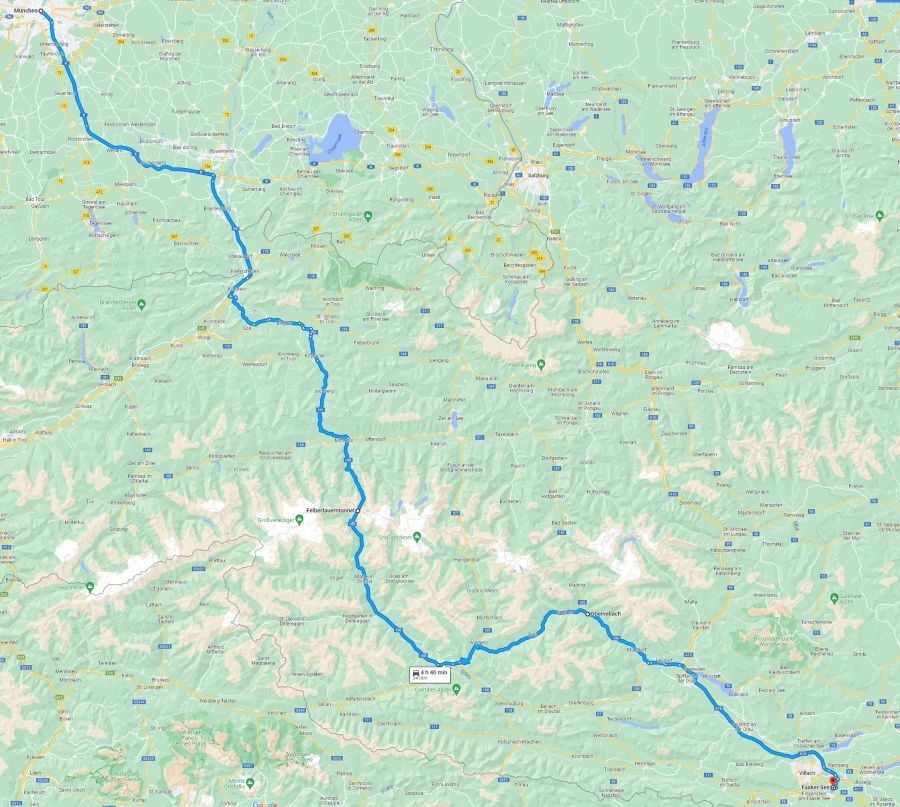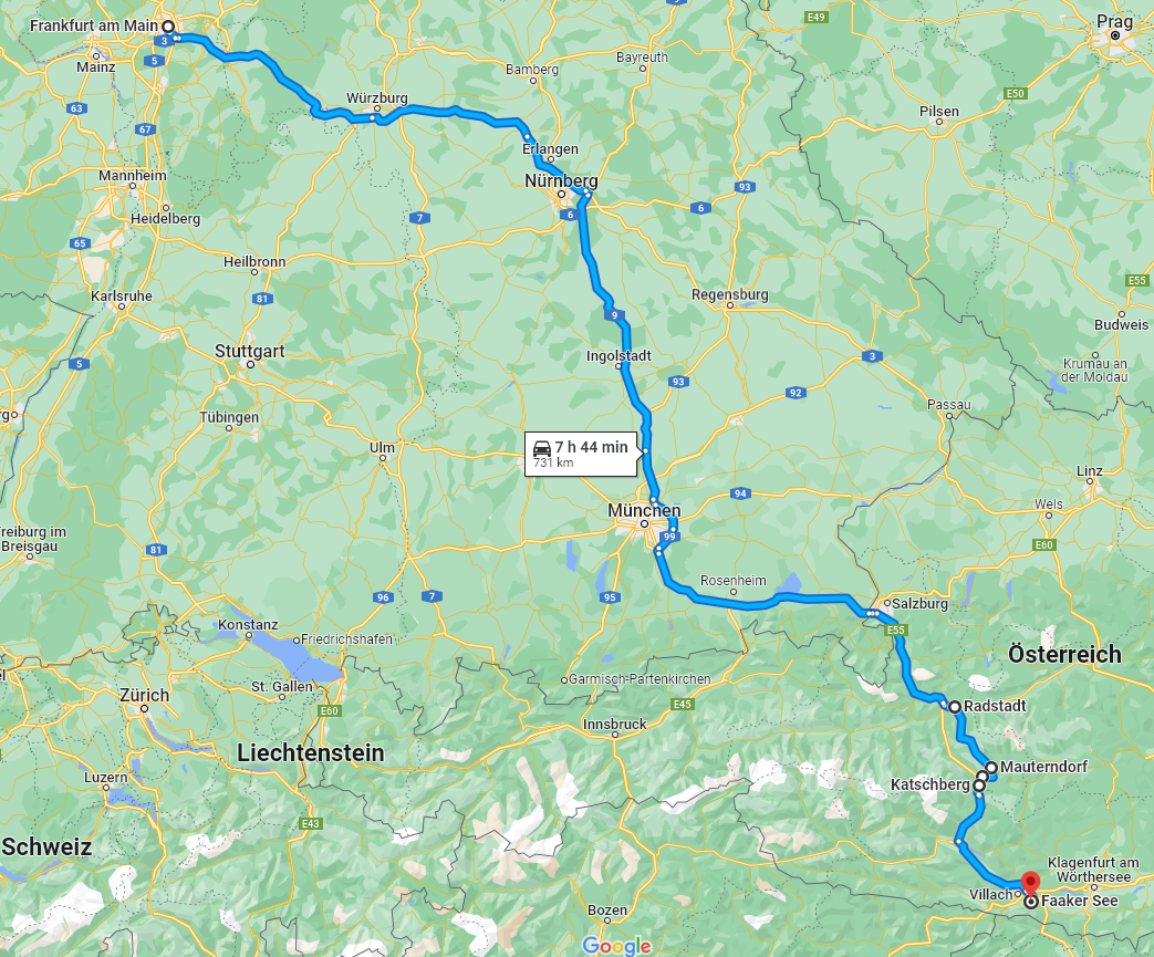 Hier nun eine Übersicht zu Anreiserouten aus Deutschland, beispielhaft für die Strecken von Frankfurt am Main nach Faak am See: