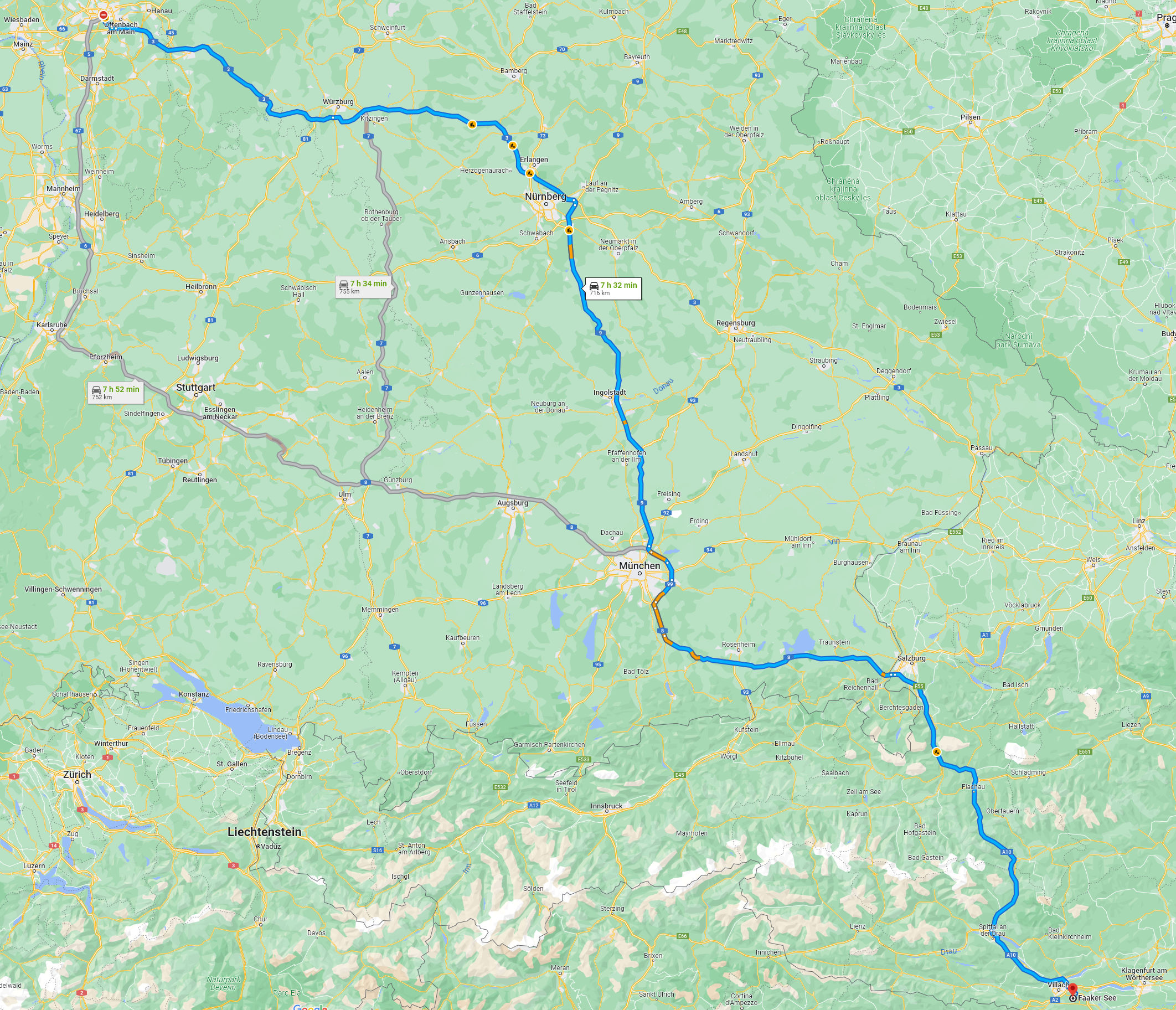 Reisedauer bis Faak 7:48 Stunden, Fahrtstrecke 742 Kilometer
