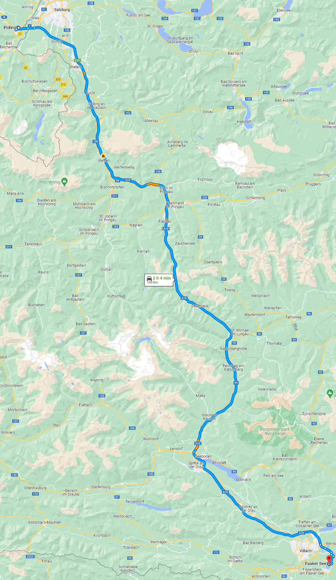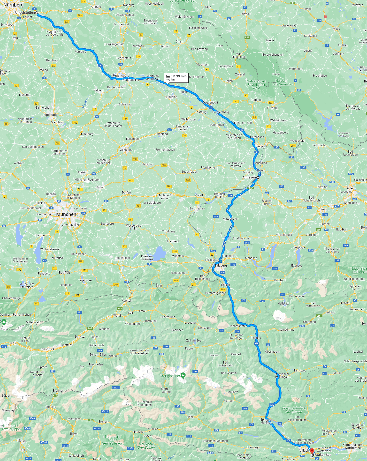 Reisedauer bis Faak 7:59 Stunden, Fahrtstrecke 737 Kilometer