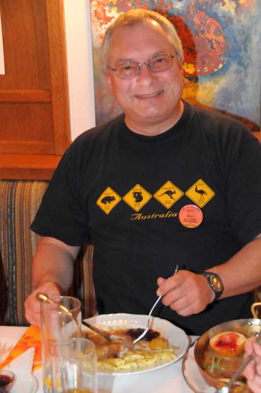 Hans freut sich über sein Mittagessen
