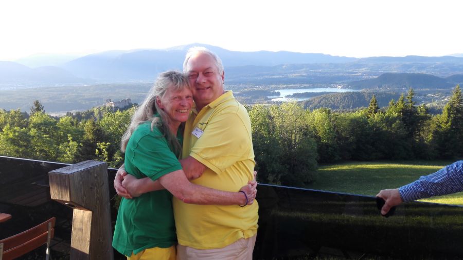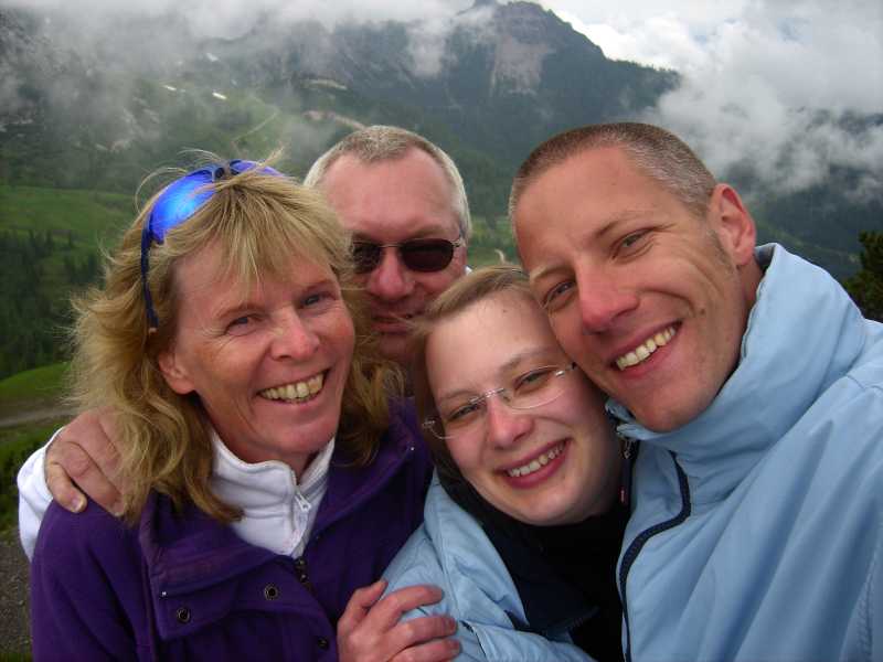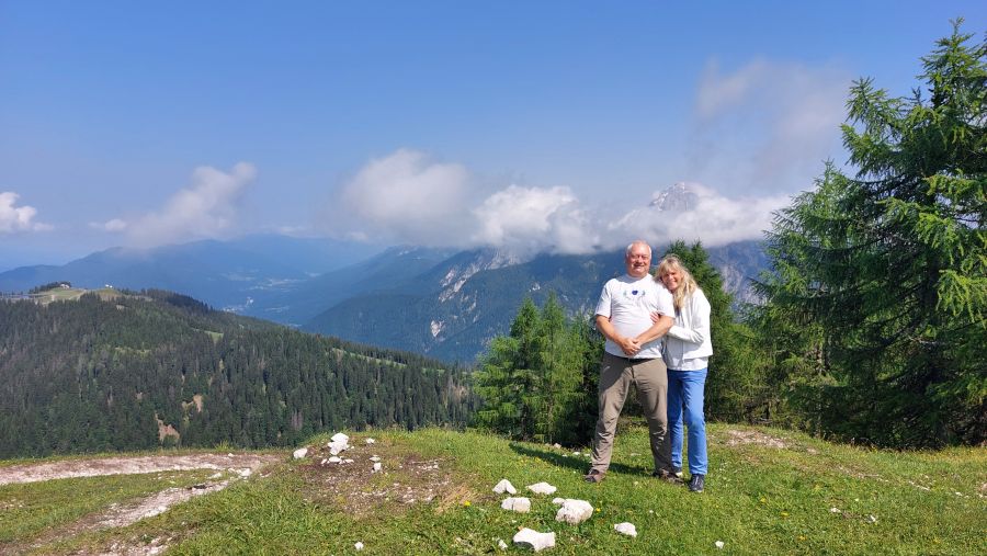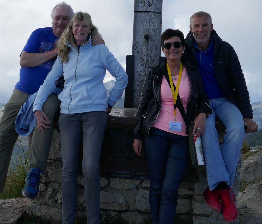 Mit Ingrid und André am Gipfelkreuz vom Zwölferhorn (Cabriotreffen Salzkammergut)