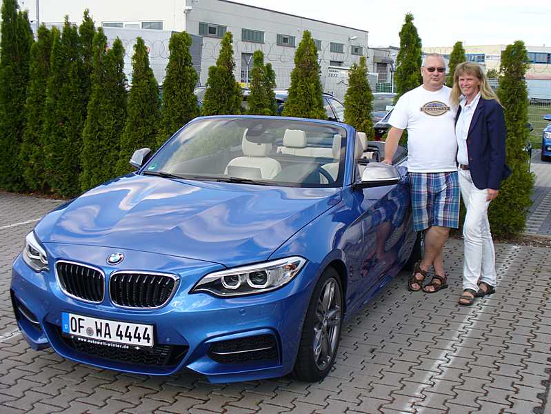 Die beiden sind treue BMW-Fahrer. Es begann mit einer 325e (eta) Limousine, das erste Cabrio war ein 325i, danach folgten 328i, 330ci und ein M3. Es ging also mit Hubraum und Motorleistung stets nach oben bis zu 343 PS: Freude am Fahren...