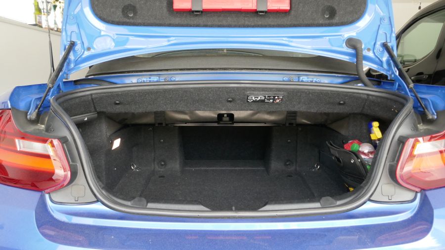 Der Verdeckkasten kann hochgeklappt werden und damit ist der Kofferraum fast so groß wie bei einer Limousine.