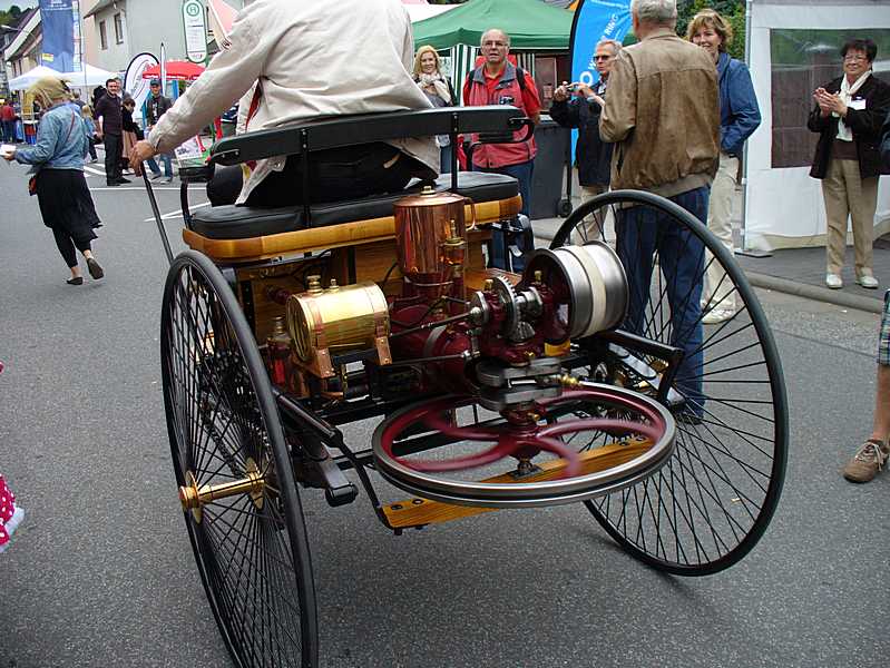 ...eine Replika des Mercedes Benz Patent-Motorwagens vorbei)...