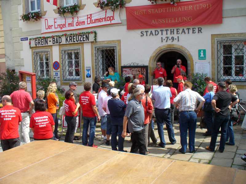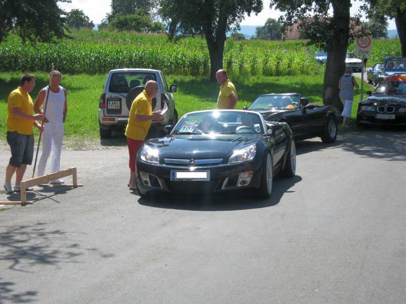 Als wir gegen 10:00 Uhr am Cabriotreff eintrafen, herrschte hier schon reges Treiben. Um uns für die Rätselrallye anzumelden, mussten wir über eine Stunde in der Schlange warten (die Wolfsbacher sollten evtl. über eine schnellere Abwicklung nachdenken).